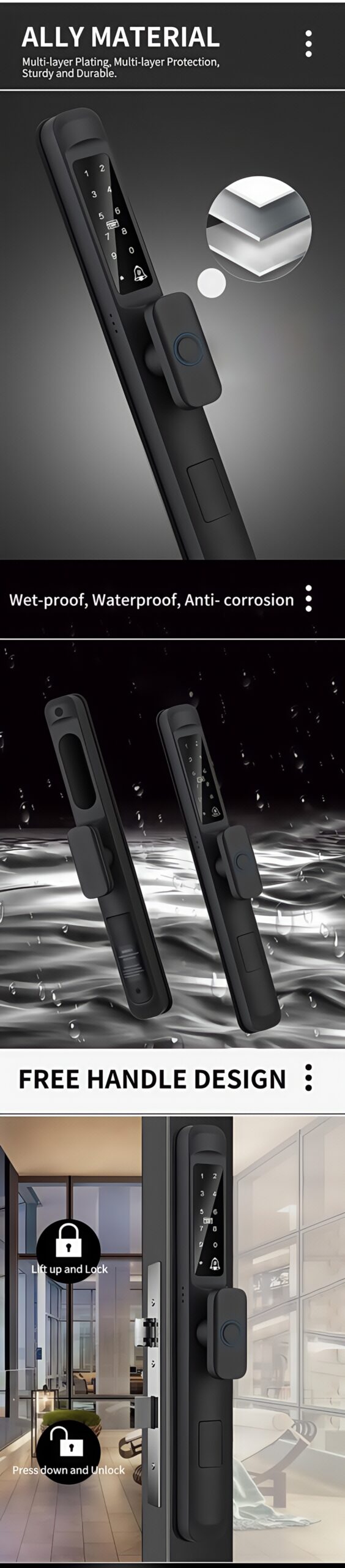 Unlock method: Fingerprint, Password,Card, Key