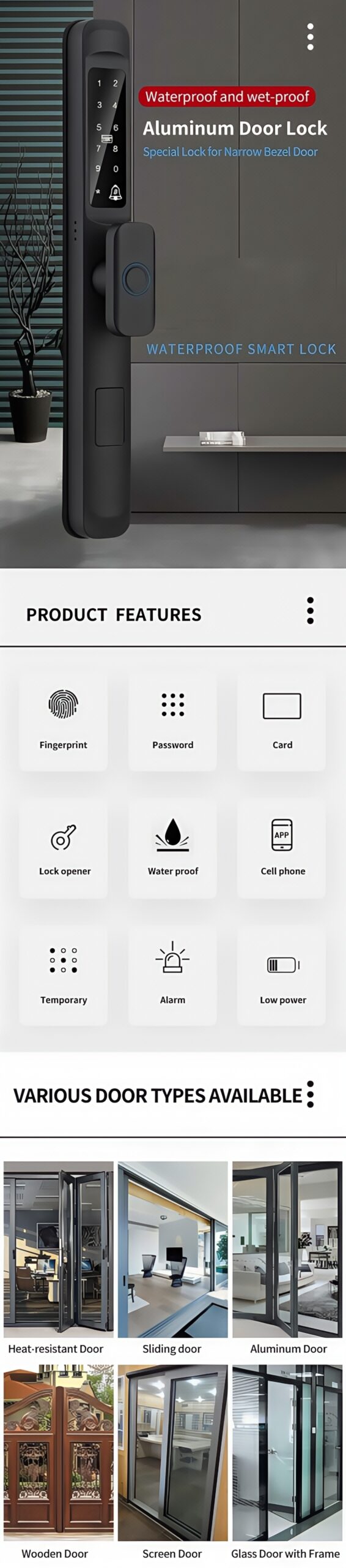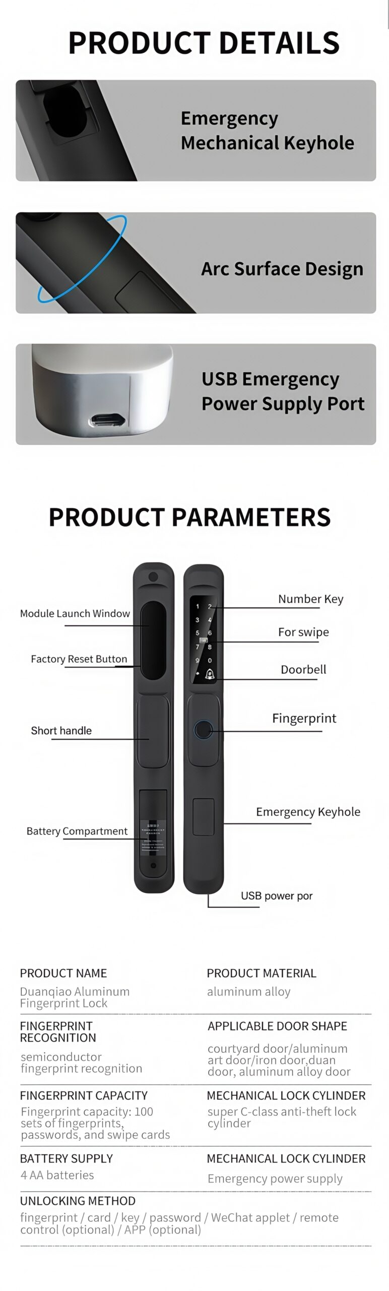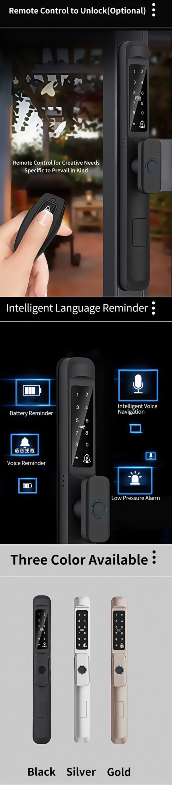 Unlock method: Fingerprint, Password,Card, Key