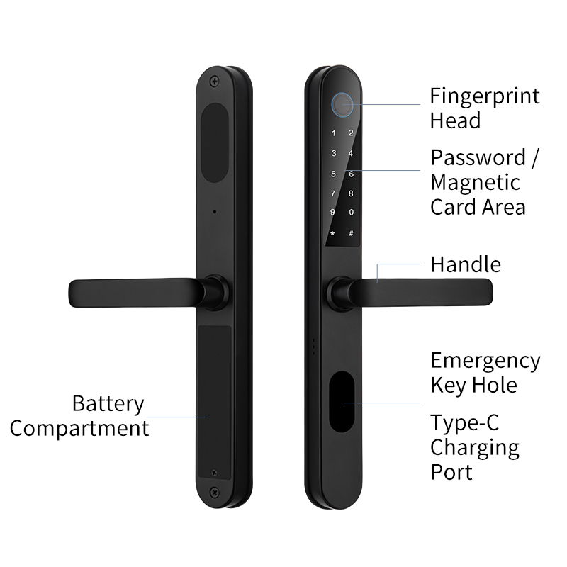 - Multiple Access Methods: Unlock via fingerprint, password, card, key, remote unlocking like tt lock, tuya. Offer temporary access codes for guests and service providers.