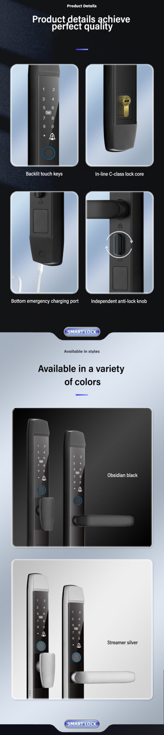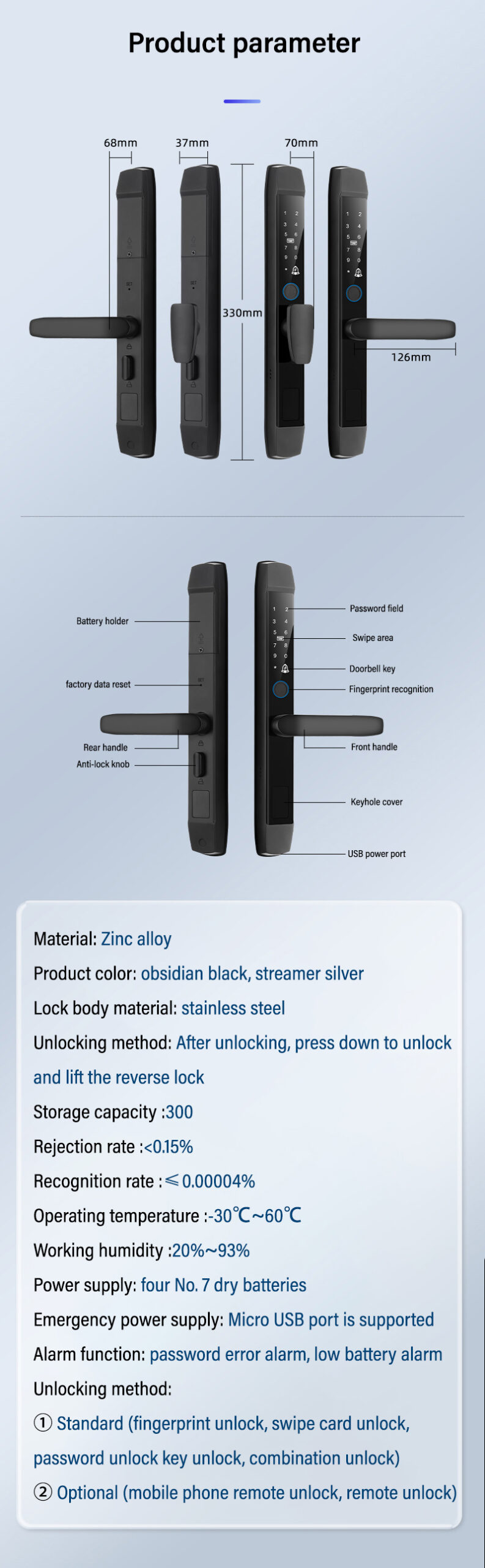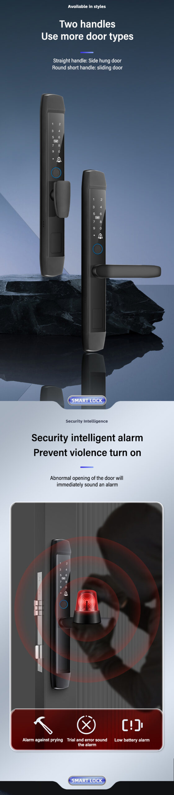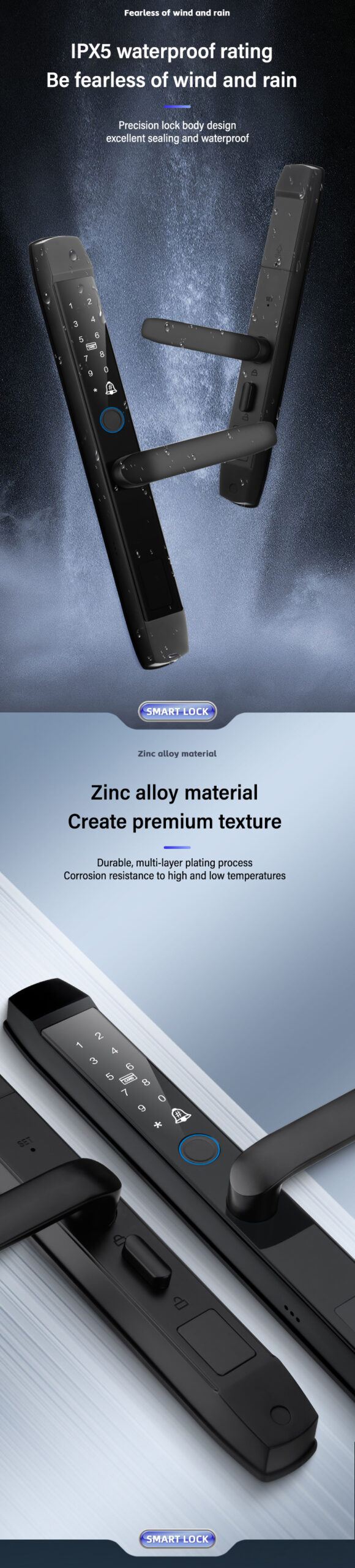Unlock method: Fingerprint, Password,Card, Key,Tuya/TT