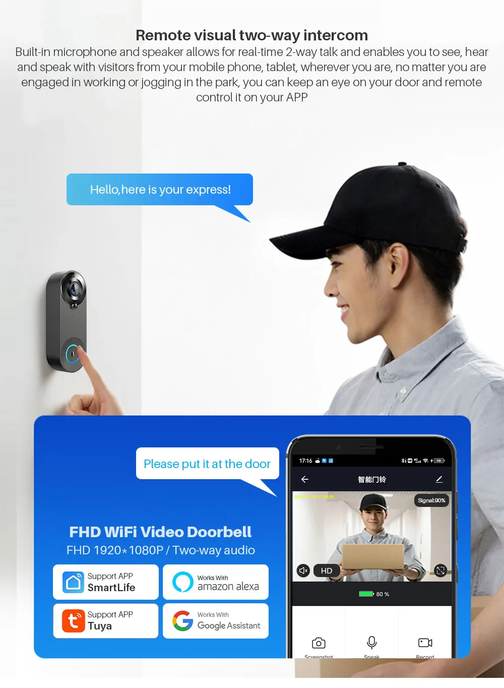 Type: 1080P 2.4G Wi-Fi Video Doorbell