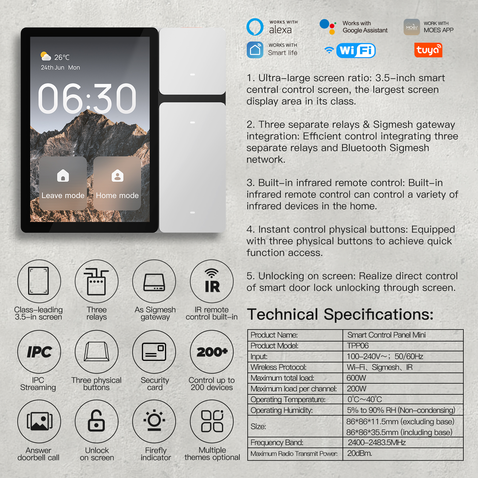 Tuya WiFi 3.5-inch Smart Control Aluminum Panel