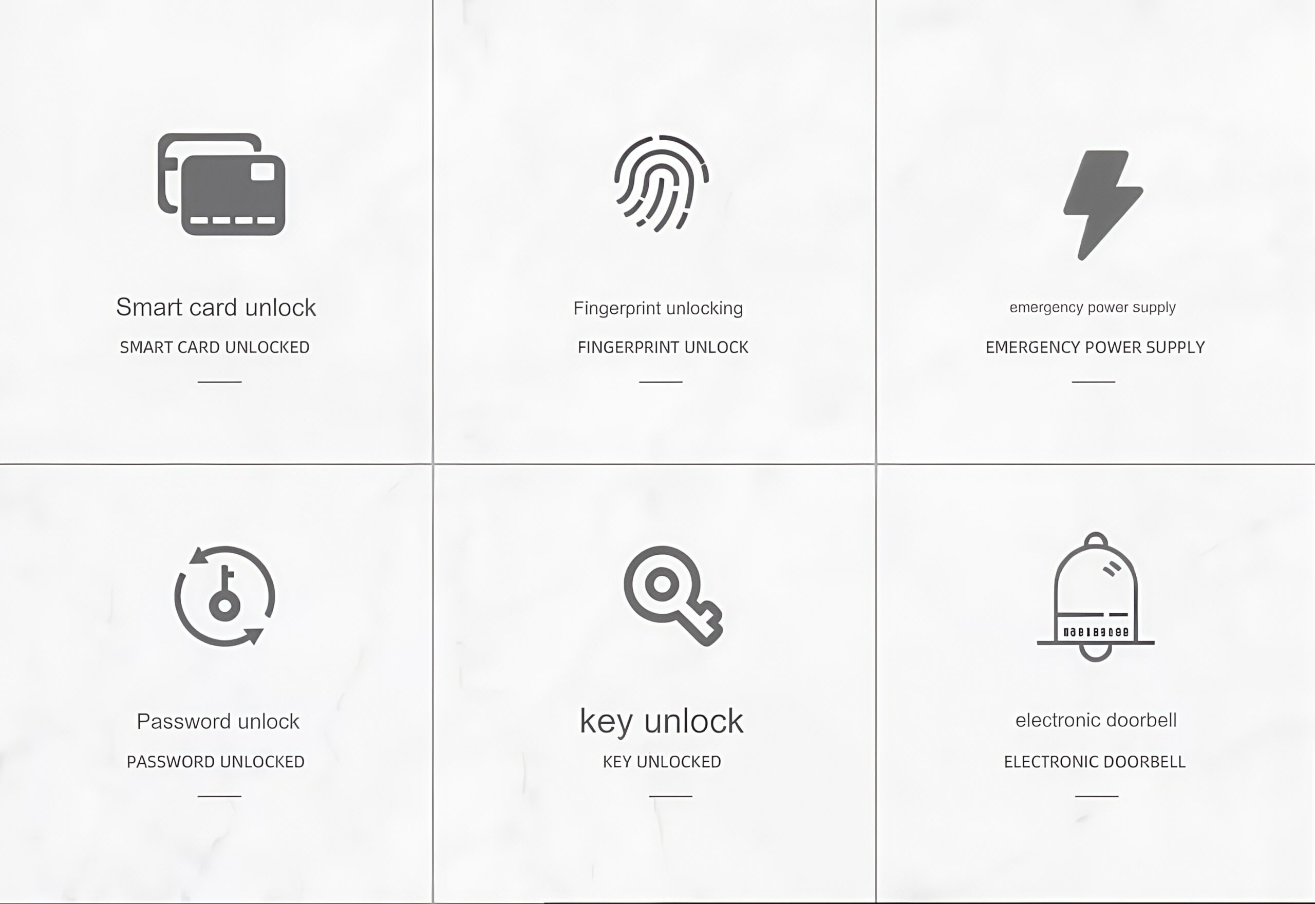 Unlock by: Key, IC card, Fingerprint, Password, App