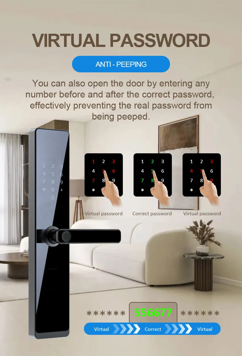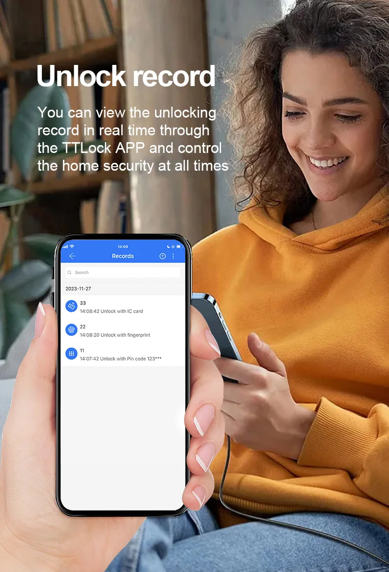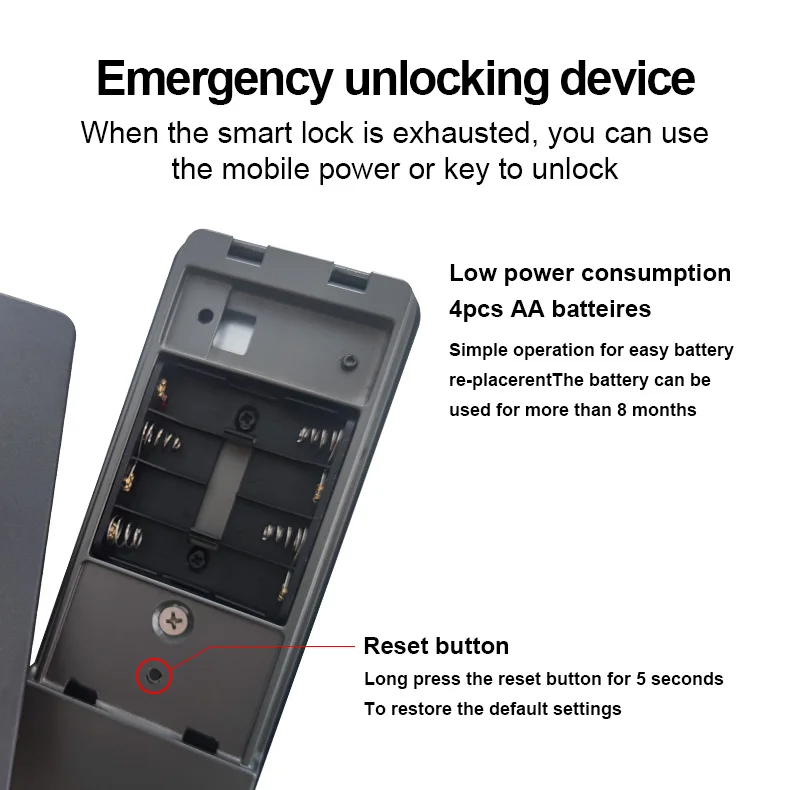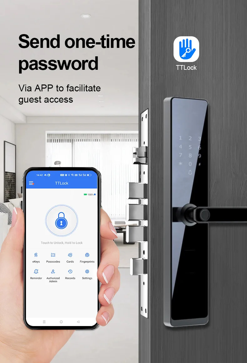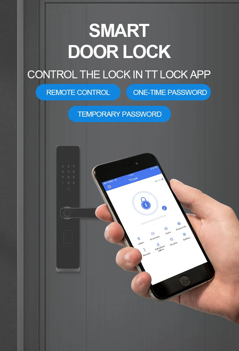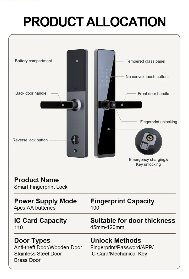 Unlock by: Key, IC card, Fingerprint, Password, App;