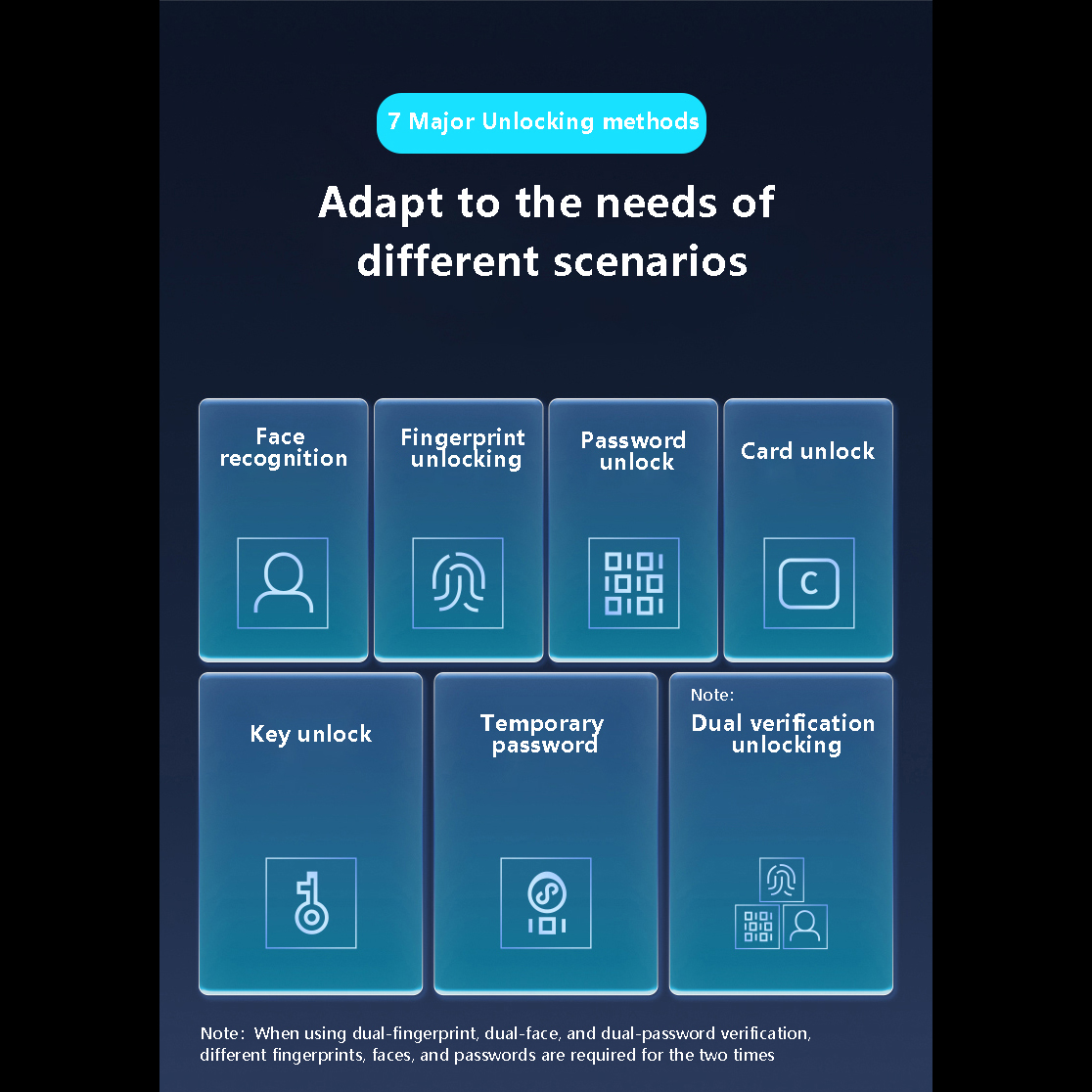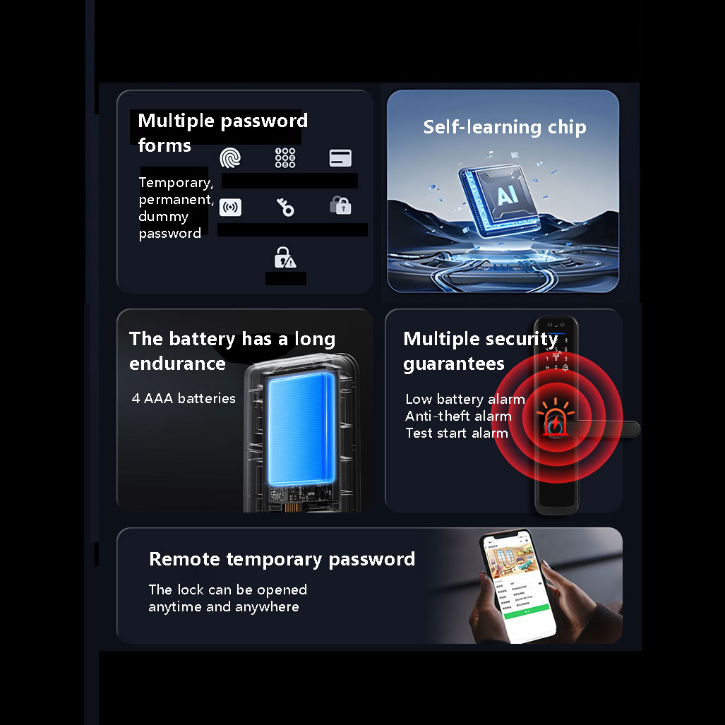 Unlock method: Face, Fingerprint, Password,Card, Key,tuya APP