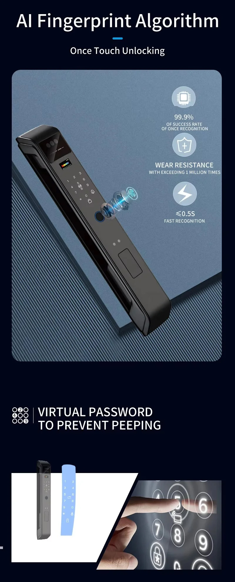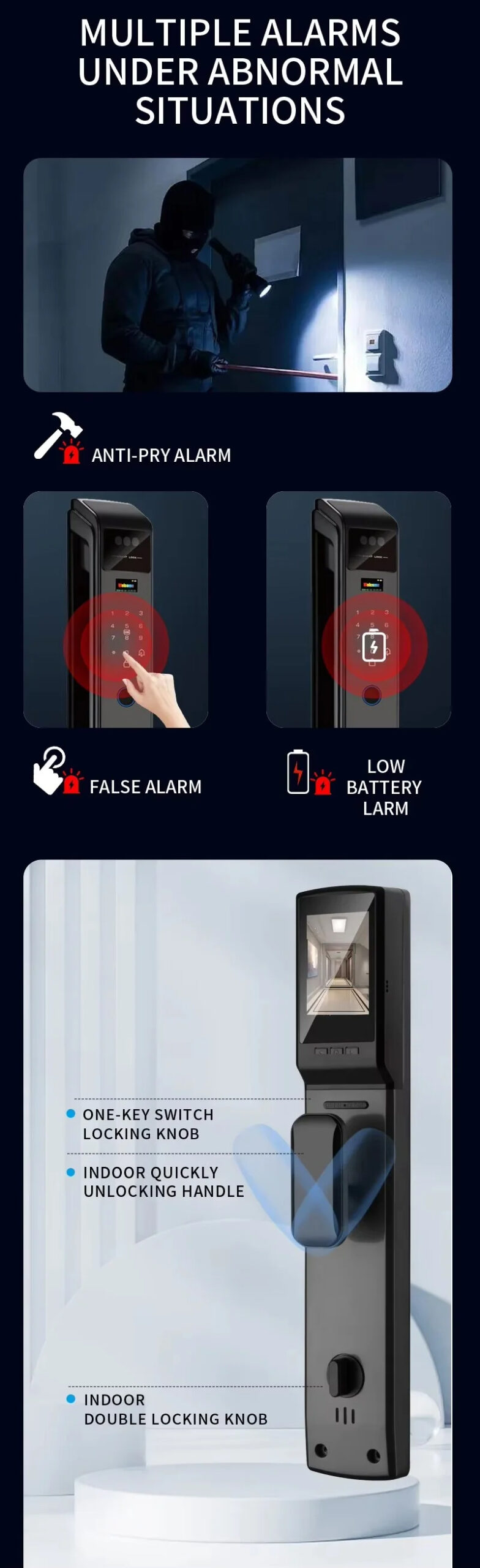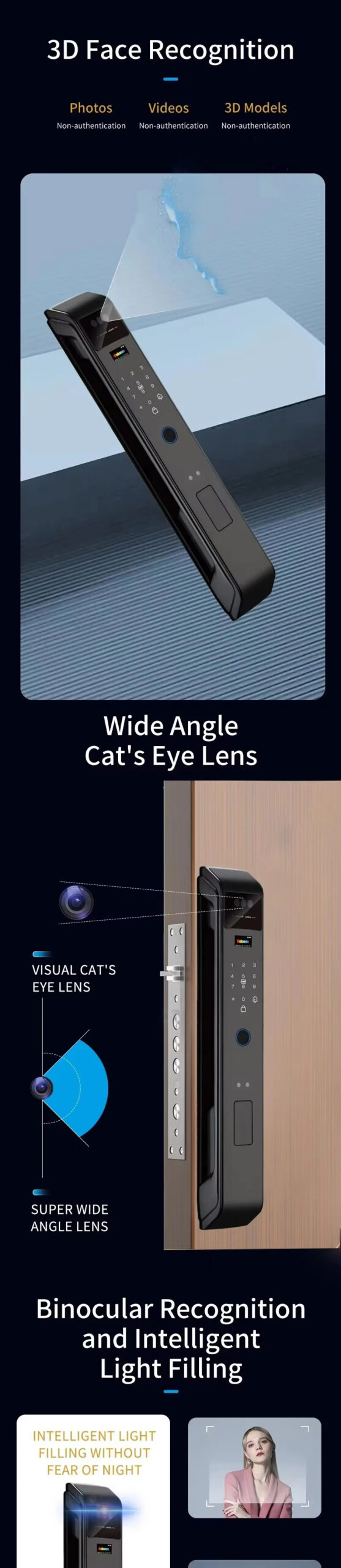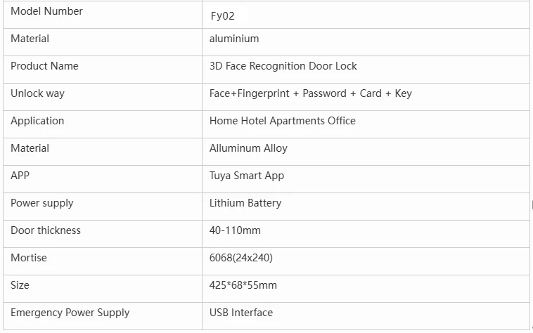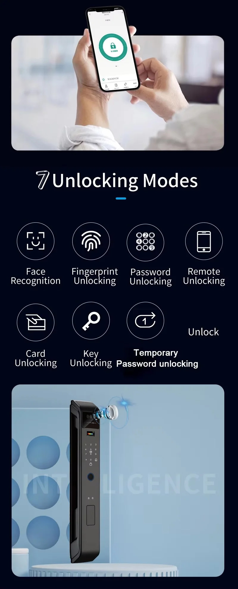 Unlock method: 3Dface, Fingerprint, Password,Card, Key, App