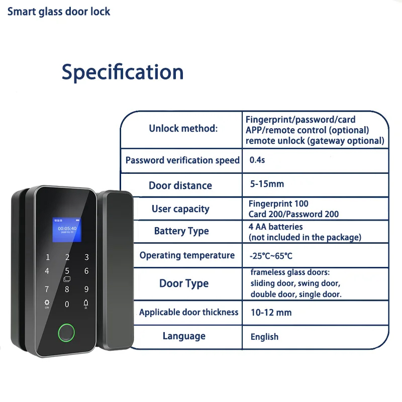 Fingerprint Smart Lock Front Office Door Lock for Glass Door