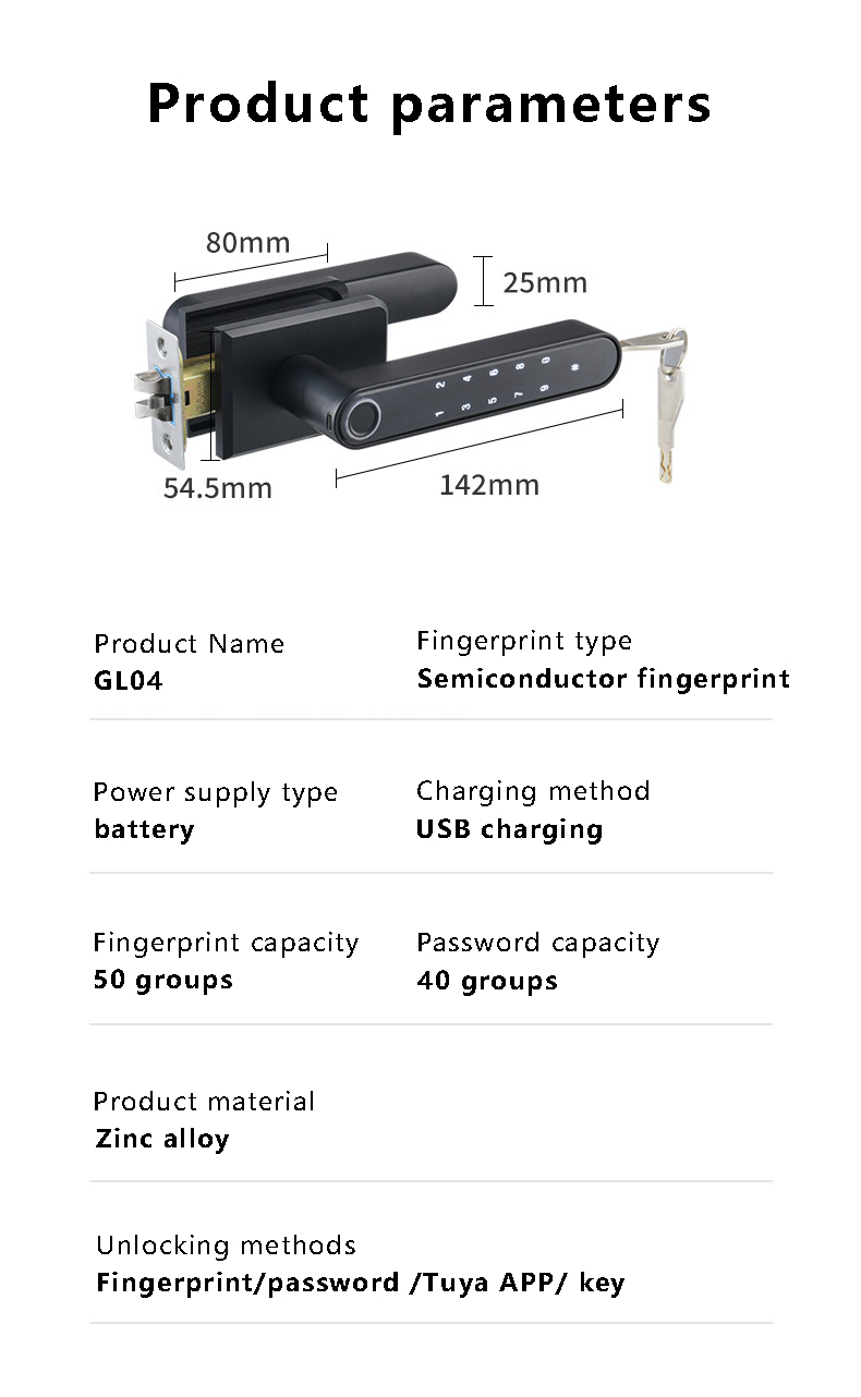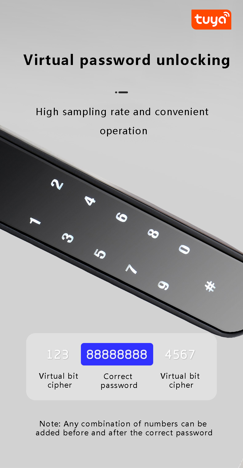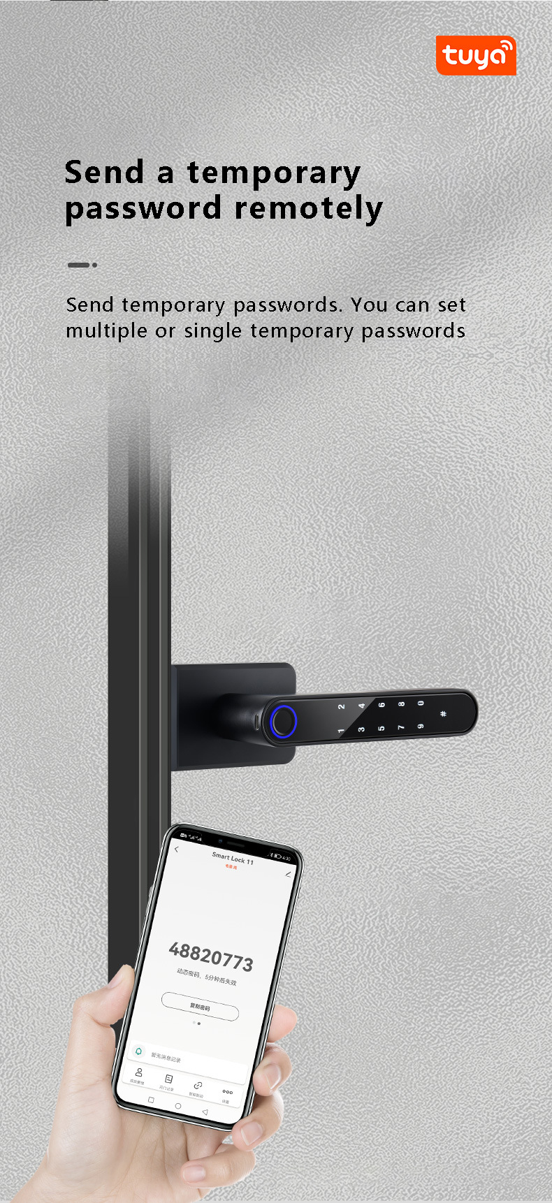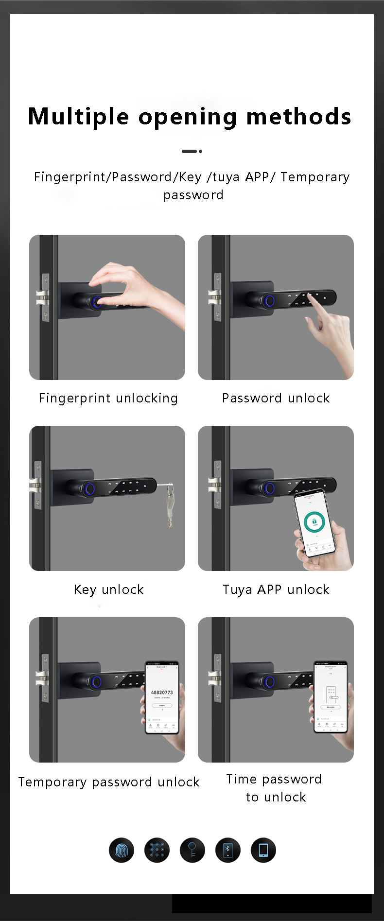 Unlock method: Fingerprint, Password,Card, Key, tuya bluetooth