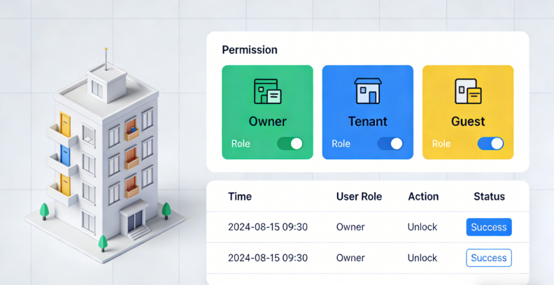 Long term rental smart lock handles tiered permissions: owners (full admin), residents (unlimited), guests (temporary). Platforms log 10,000+ events per lock for audits.