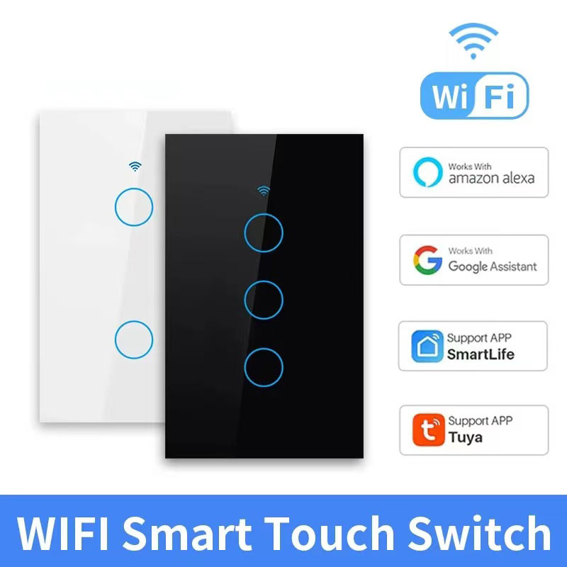 Tuya Wifi Smart Touch Wall Switches Modern EU Switch Wireless Remote LED Light Switches No Neutral Wire Required 4/6 Gang