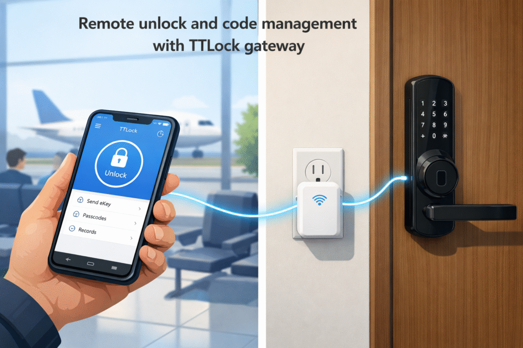 - Remote access with gateway – When used with a TTLock gateway, you can control locks over the internet: unlock remotely, change or delete passwords, issue or revoke cards, sync time, and read access logs from anywhere.