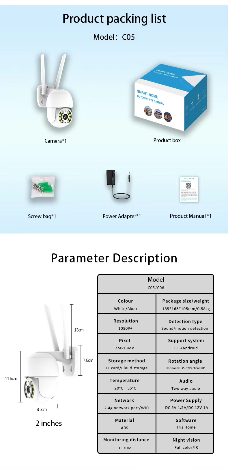 Storage: Supports 8–128GB TF card